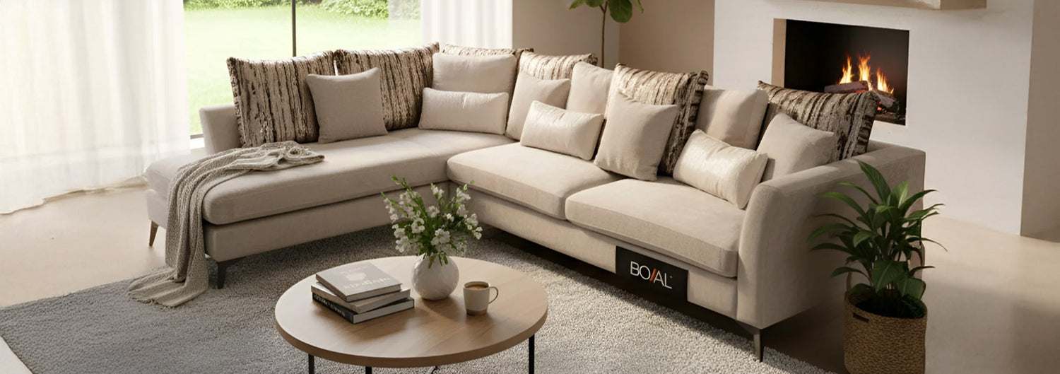 SALA ESQUINERA GALARDI DE TELA COLOR GRIS