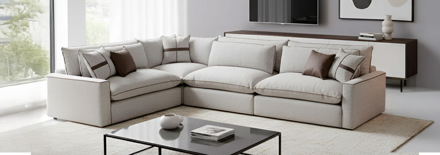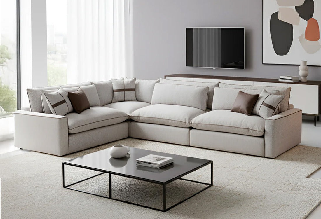 SALA ESQUINERA GALARDI DE TELA COLOR GRIS