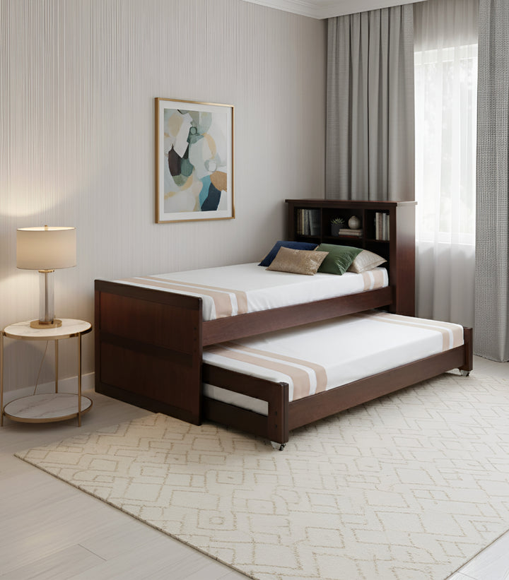 Cama Canguro Capitán Individual de madera color chocolate - Incluye Juguetero