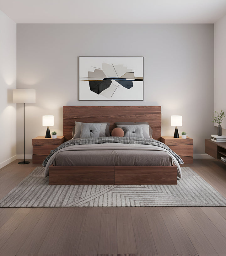 Cama King Size Kala Acabado Nogal (Cabecera y 2 buros)