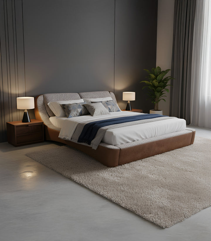 Cama King Size Panerai de Madera Color Café con Dos Burós – Elegancia, Funcionalidad y Estilo en un Solo Conjunto