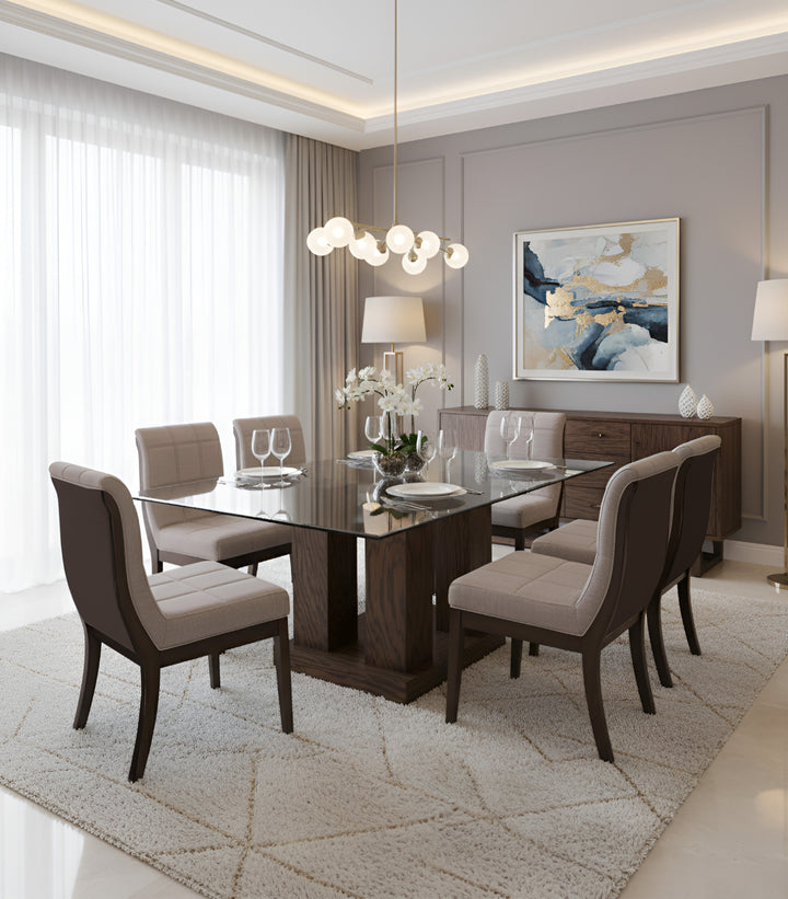 Comedor Maslow De Madera Con Cristal Para 8 Personas Cuadrado Mesa Y Sillas De Tela color Café