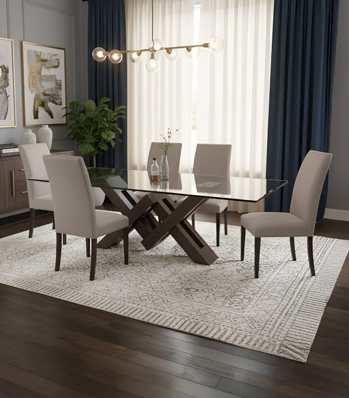 Cubierta de Vidrio de 19 mm: La mesa cuenta con una cubierta de vidrio de 19 mm, que no solo resalta la belleza de la madera, sino que también crea una sensación de amplitud en cualquier espacio. Este detalle moderno aporta un toque sofisticado a tu comedor.