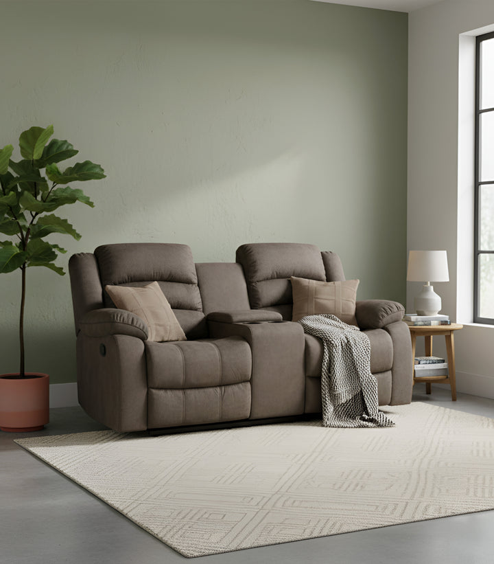 Love Seat Reclinable Lubeck de Tela Color Café con Porta Vasos