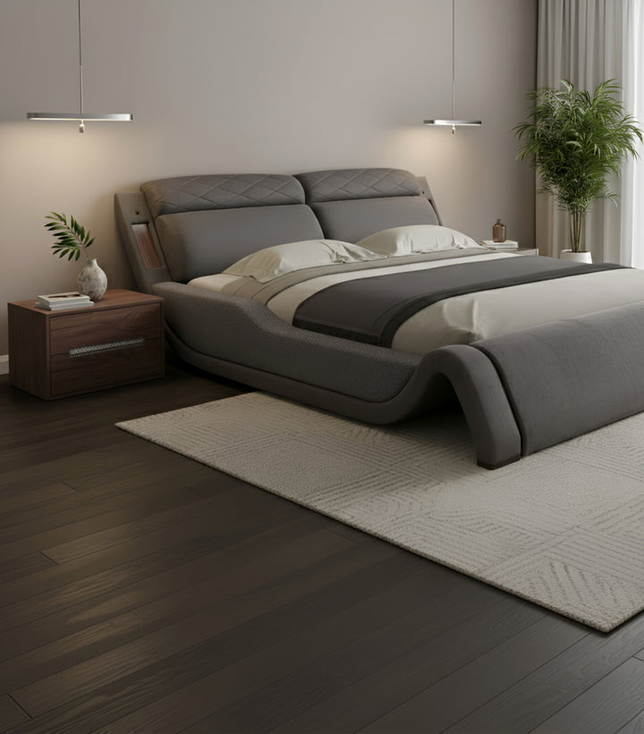 Cama King Size Booyer de Tela Gris – Estilo, Confort y Elegancia en un Solo Mueble