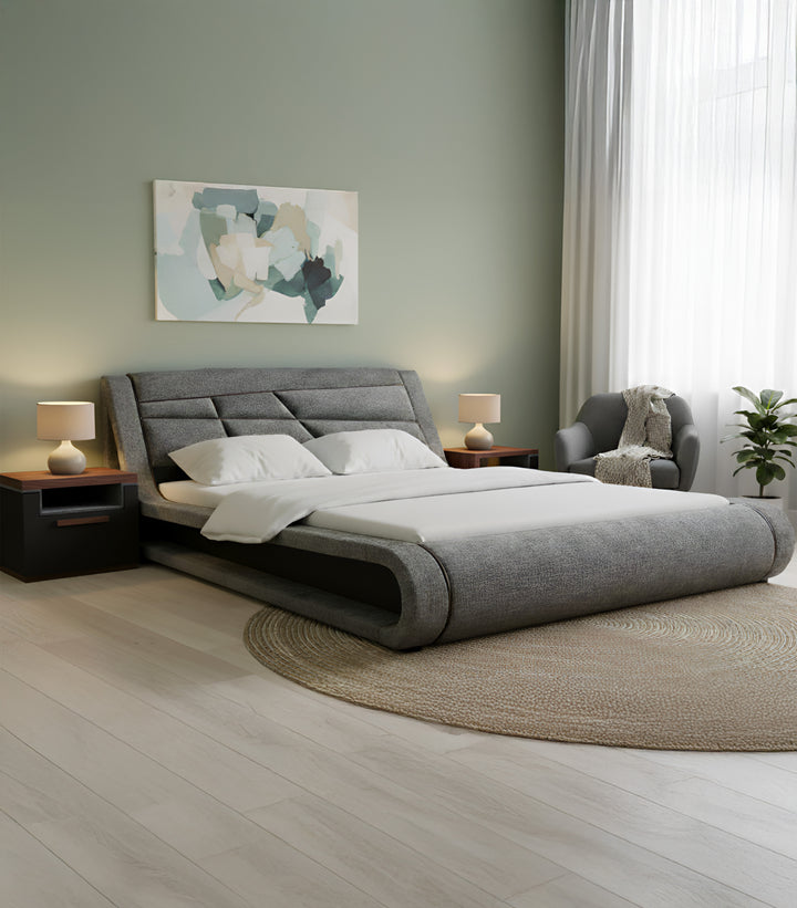 Recámara King Size Zenith Tapizada en Tela Gris - Incluye base, Cabecera y 2 burós