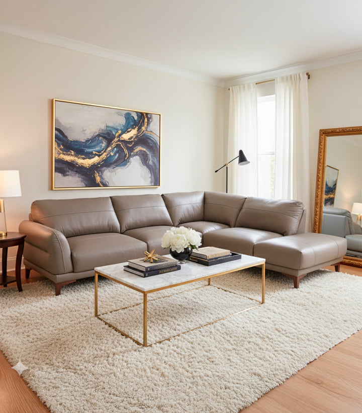 Sala Esquinera Derecha Nahia de Piel Color Gris – Elegancia y Confort para tu Hogar
