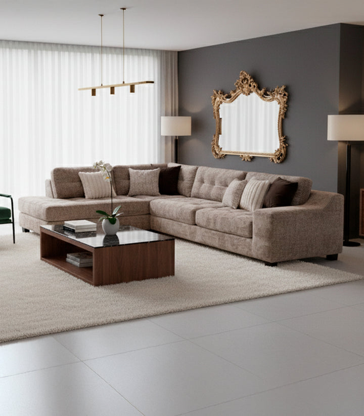 Sala Esquinera Izquierda Modric de Tela Color Latte – Elegancia y Confort para tu Hogar