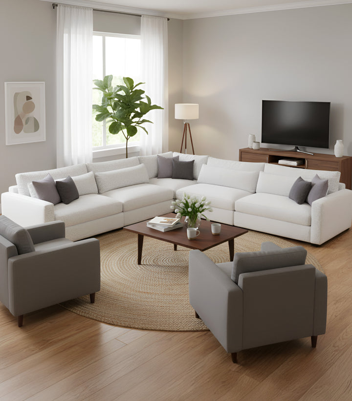 La Sala Esquinera Osaka de tela color silver es una elección elegante para tu hogar. Con su tela de alta calidad y su moderno color plateado, esta sala aporta sofisticación y estilo a cualquier espacio. Además, su diseño esquinero maximiza el espacio y brinda comodidad al mismo tiempo. Un complemento perfecto para cualquier hogar.