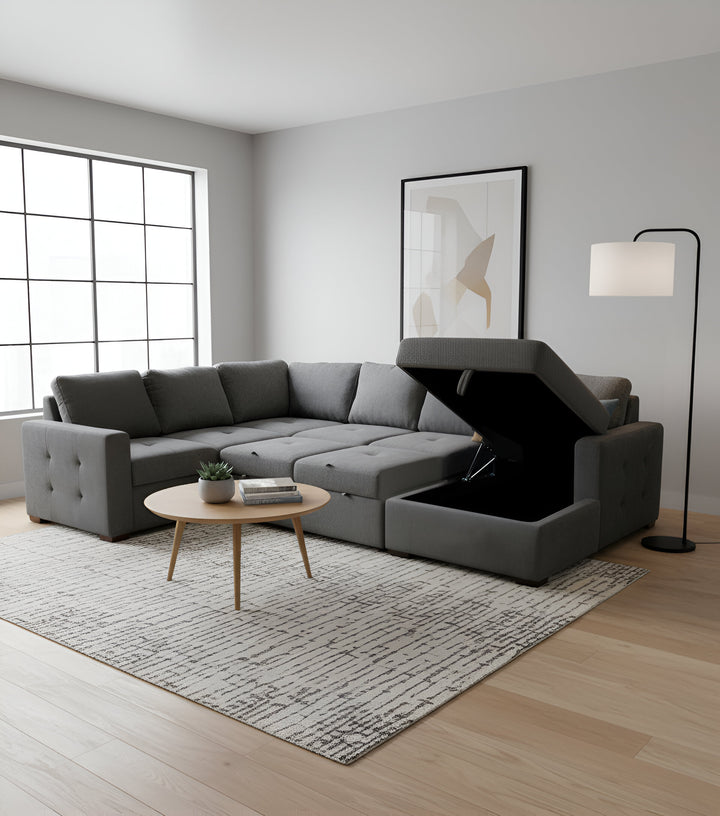 Renueva tu sala con la elegancia y comodidad de la Sala Esquinera Rox de Tela Color Gris. Este cómodo mueble esquinero ofrece un diseño moderno y funcional, perfecto para espacios amplios. Fabricada con tela de alta calidad en color gris, esta sala es duradera y fácil de mantener. Su diseño esquinero optimiza el espacio, mientras que sus asientos acolchados te brindan la comodidad que necesitas.