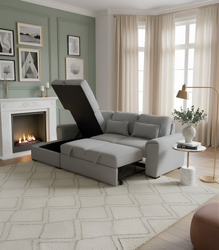 Sala Esquinera con Cama Catal de Tela Color Gris – La pieza perfecta para maximizar tu espacio y tu estilo.