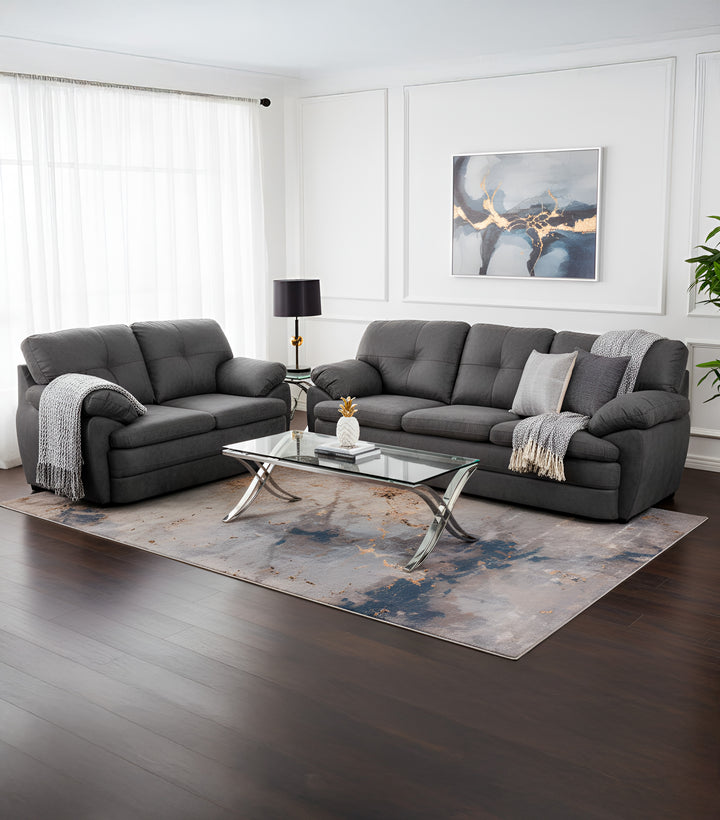 Sala Kristen de Tela Color Gris - Sofá y Love Seat