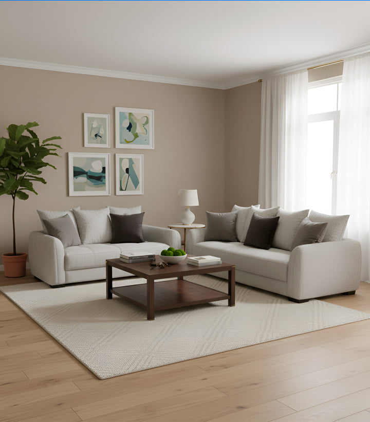 Sala Roberts de Tela Color Beige – Sofá y Love Seat