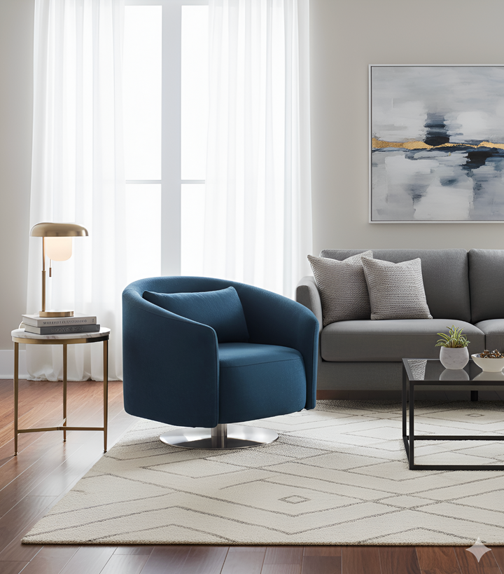 Sillón Ocasional Rusell de tela color Azul. Con su elegante diseño y cómodo asiento acolchado, este sillón añadirá un toque de sofisticación a cualquier espacio de la casa. La tela de alta calidad asegura una durabilidad duradera y fácil de limpiar. Perfecto para relajarse después de un largo día.