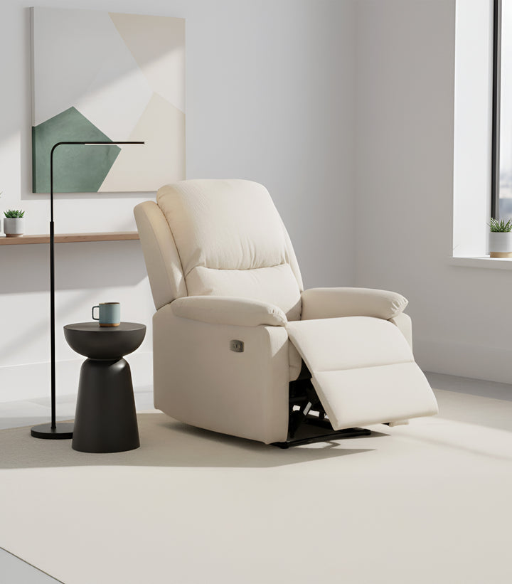 Sillón Reclinable Eléctrico Tyson de Tela color Beige - Con Entrada Usb