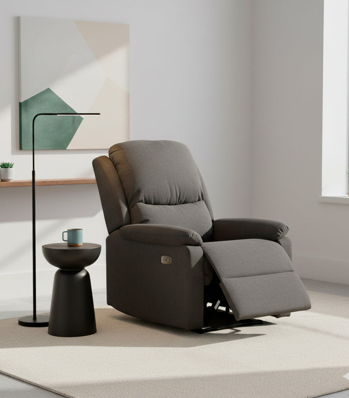 Sillón Reclinable Eléctrico Tyson de Tela Gris - Con Entrada Usb