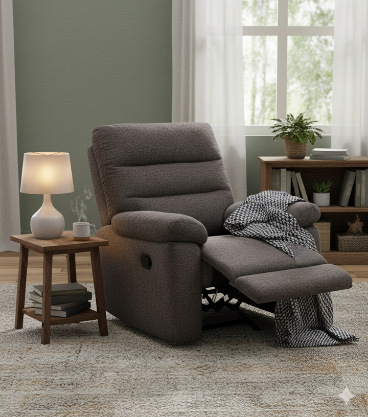 Sillón Reclinable Manual Kenji de Tela Color Café – Relájate con Estilo y Comodidad