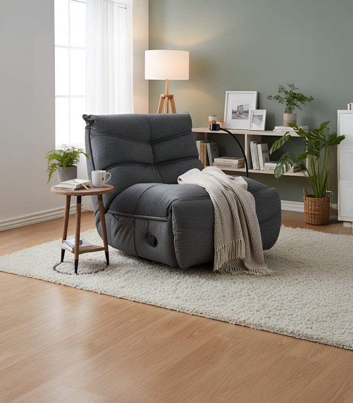 Sillón Reclinable Manual Manny Gamer Giratorio, Mecedora y con Porta Celulares de Tela Gris Oscuro – ¡El Asiento Definitivo para Jugadores y Amantes del Confort!