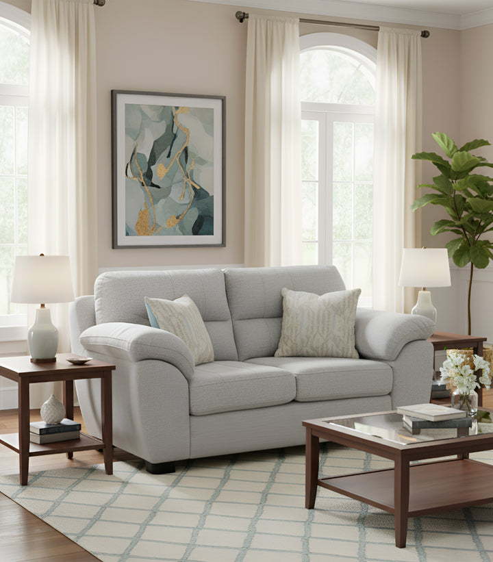 Transforma tu espacio con el Love Seat Berna, un sofá diseñado para quienes buscan confort, diseño contemporáneo y calidad superior. Su tono gris claro aporta versatilidad y luminosidad, combinando fácilmente con cualquier estilo decorativo, desde lo minimalista hasta lo nórdico o moderno.