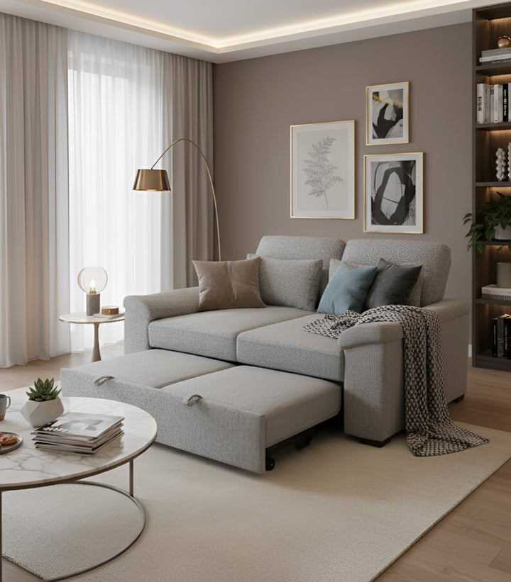 Sofá Cama Zoe de Tela Color Gris – Funcionalidad y Estilo en un Solo Mueble