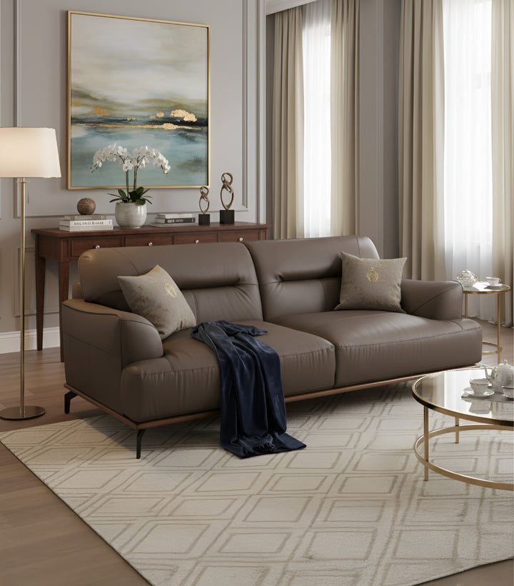 Experimente el máximo confort con nuestro sofá Leroy de piel color café. Con su suave textura y elegante diseño, este sofá no sólo es una pieza de estilo, sino también una garantía de durabilidad gracias a su resistente piel. Relájese y disfrute de su hogar con este sofá único. ¡No se arrepentirá!